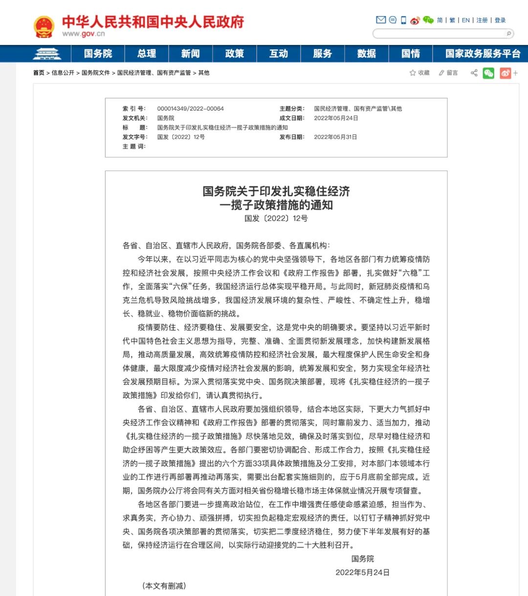 6方面33项!国务院公布扎实稳住...